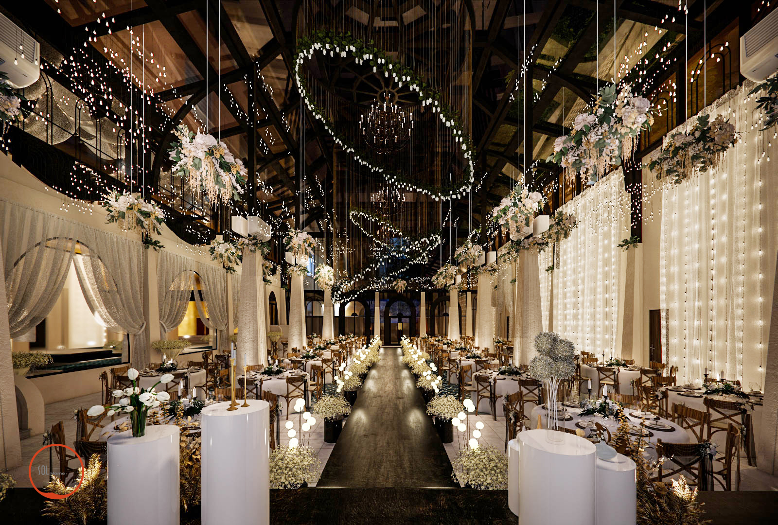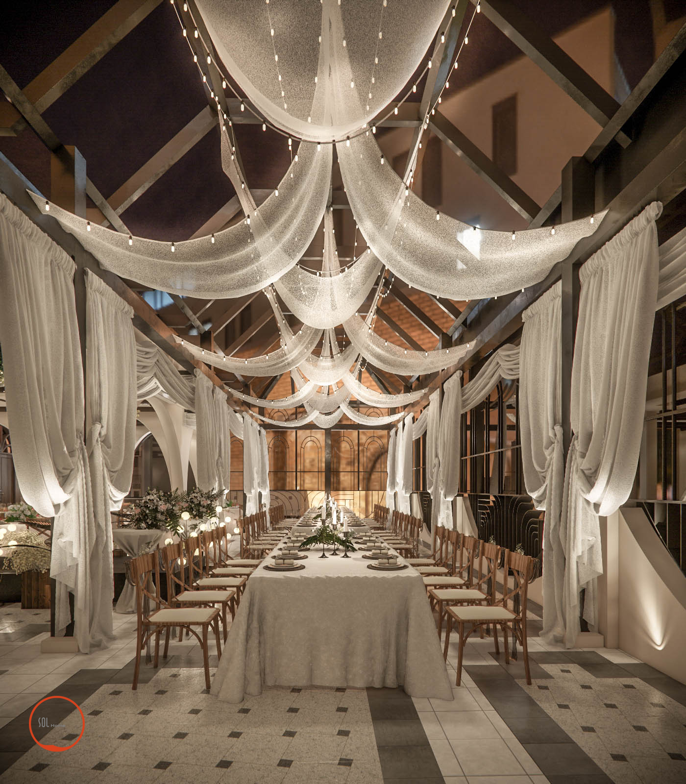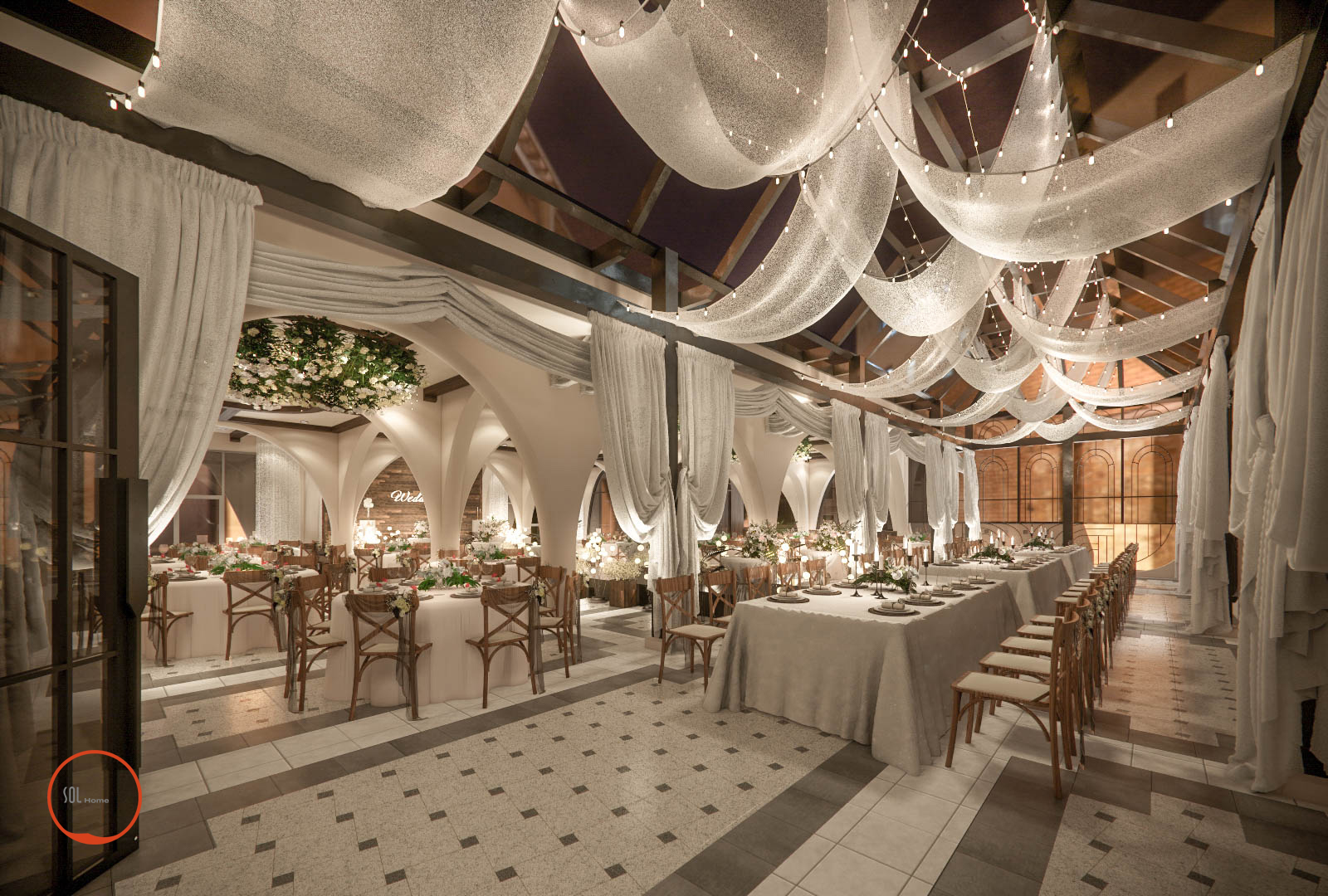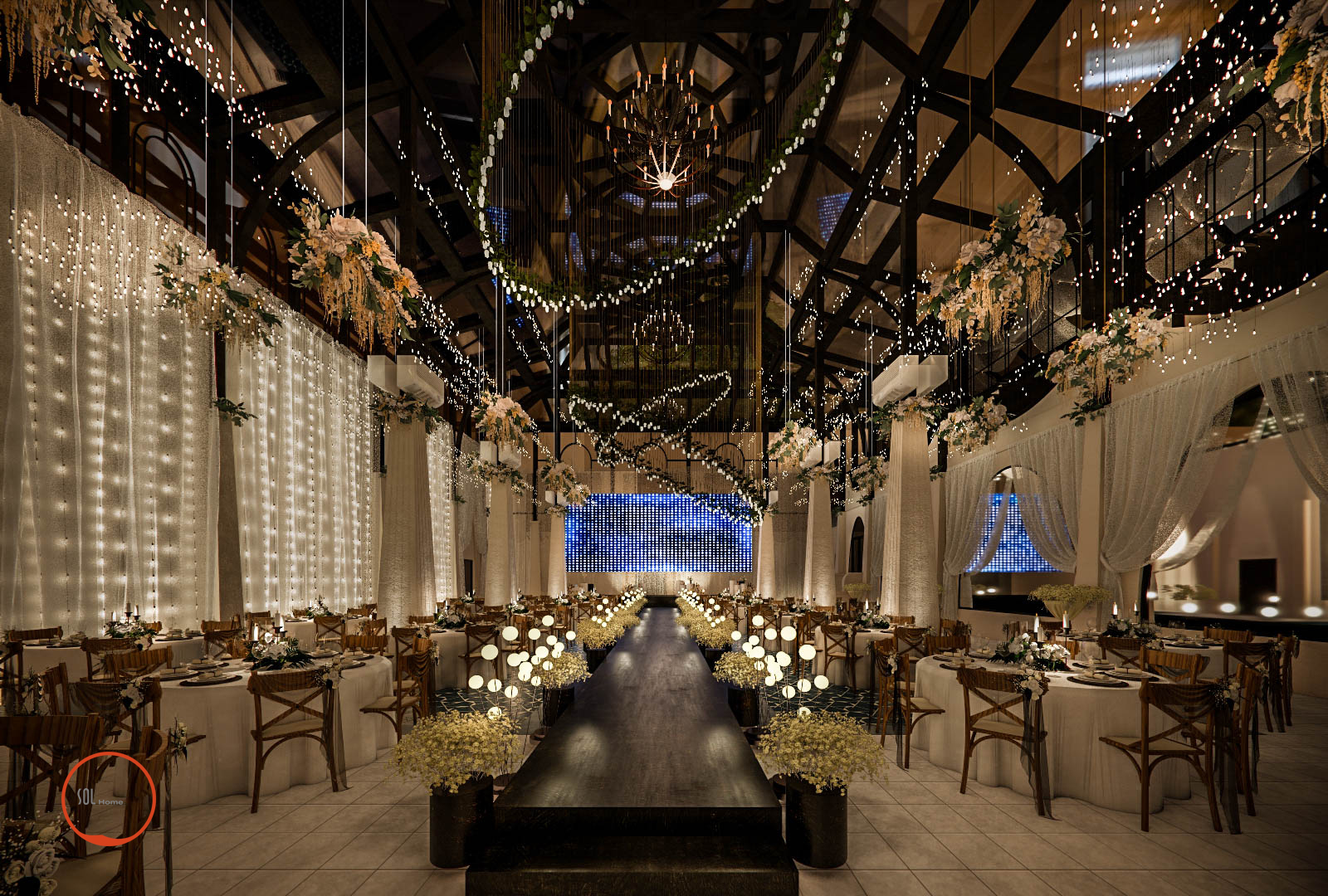 Tại MAISON không gian tiệc cưới luôn được chú trọng tỉ mỹ theo phong cách của trời tây âu, và không thể thiếu sự lãng mạng giành cho những cặp đôi chọn nơi đây làm ngày lễ trọng đại trong đời. Solhome luôn cảm thấy thật may mắn khi được góp phần tô vẽ thêm cho không gian đầy ý nghĩa này.